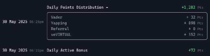 1️⃣ 準備代幣 & 積分:確保你的錢包中有至少 566 枚 VIRTUAL 代幣(約 $1,132,根據 2025 年 5 月價格 $2.00 計算),進到預售階段後,需要鎖定部分代幣。